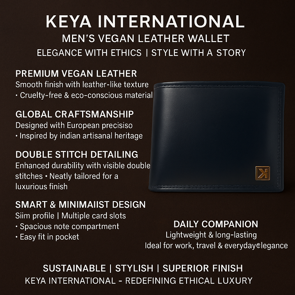 Designed for the modern gentleman, this KEYA International Velvéra wallet is crafted from textured Vegan leather, offering a refined blend of functionality and style. Its compact silhouette houses thoughtfully arranged compartments, card slots, and a coin pocket, ensuring your essentials stay organised with ease. Finished with minimal branding for a sleek, sophisticated look.